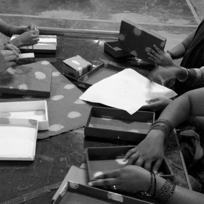 We collect this waste into bags, and send it to our partners situated in Bangalore to convert them into paper. The fabric waste is beaten up to form pulp, which is then used to convert handmade paper. The paper made from fabric waste is 100% sustainable, upcycled and recycled. There are no trees cut to make this paper, as it’s made of fabric waste.